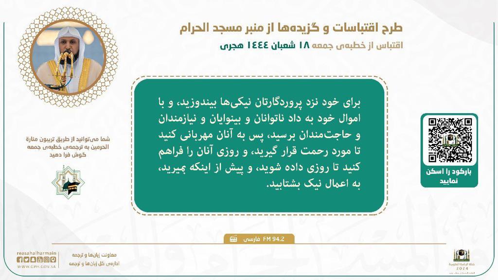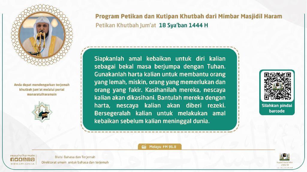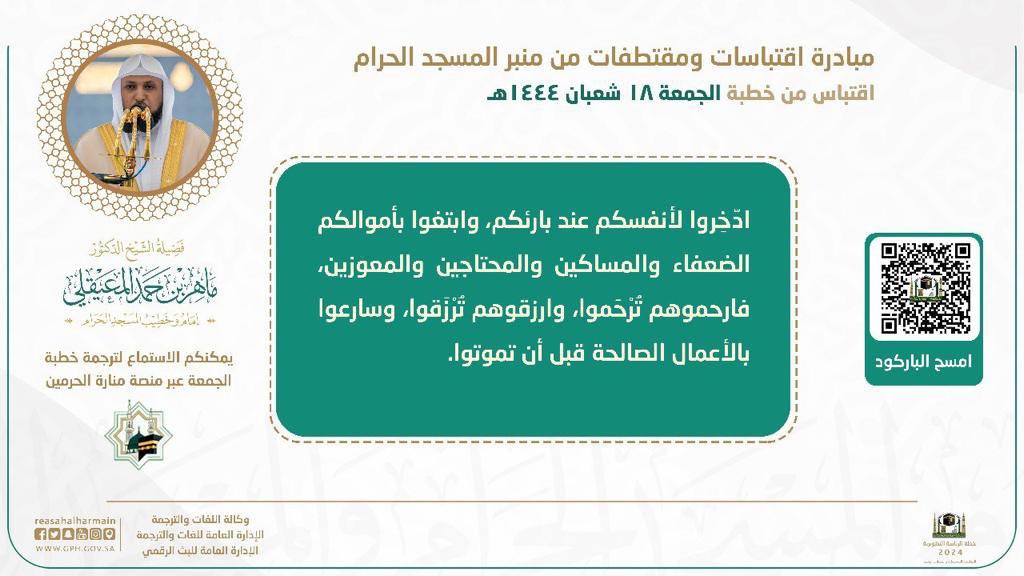 مبادرة اقتباسات ومقتطفات من منبر #المسجد_الحرام لخطبة اليوم الجمعة 18 شعبان 1444هـ .