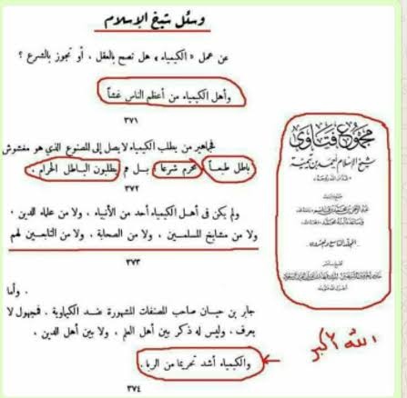 ، وفى مقدّمتهم الإمام الشّافعيّ، كانوا يعتبرون أنّ بعض علوم الطّبيعة والكيمياء والفلسفة من المحرّمات، مثلها مثل التّنجيم والضّرب بالرّمل والسّحر !!!