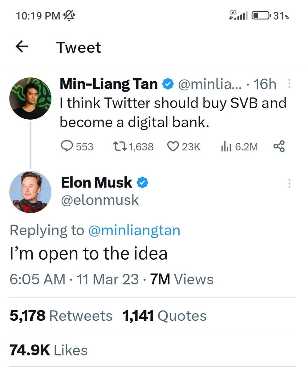 ماسك @elonmusk يدخل على الخط وينفتح على فكرة شراء البنك وتحويله إلى بنك الكتروني