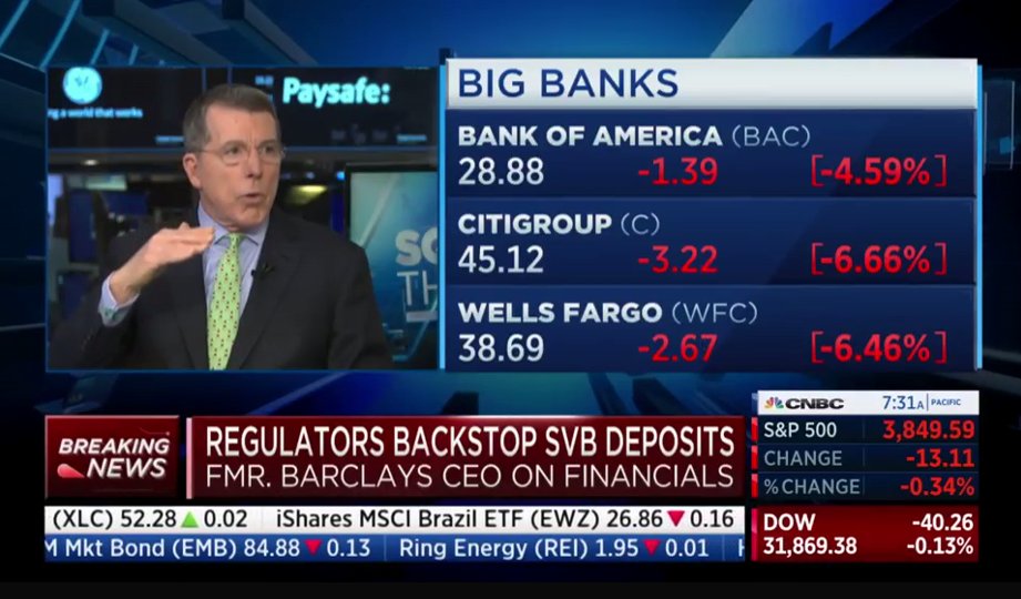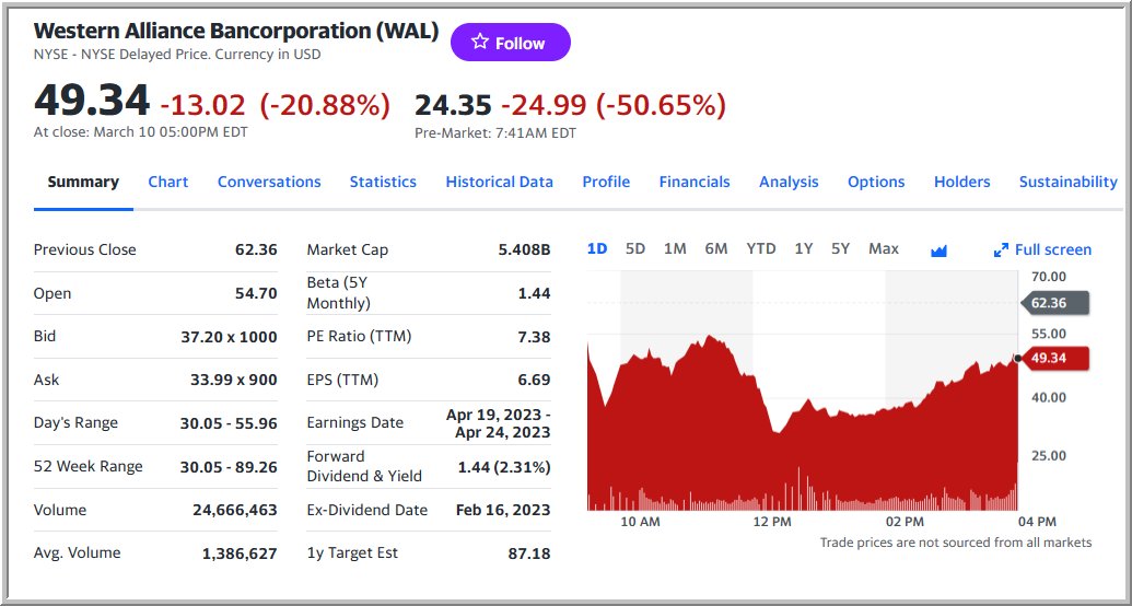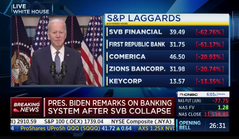 داوجونز على هبوط 420 نقطة، ونازداك على هبوط 160 نقطة قبل 45 دقيه من افتتاح الاسواق الامريكية وقبل ربع ساعة من خطاب الرئيس بايدن، البنوك المحلية والشركات المالية تتعرض لهبوط حاد