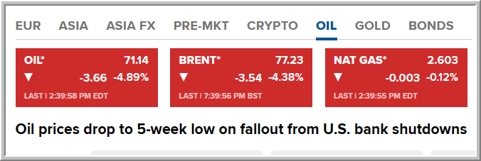 قبل افتتاح جلسة الاثنين، اسعار النفط على تراجع يقارب 3%، والذهب يقفر 1.4% بالقرب من 1892$، الدولار يتراجع امام العملات الاخري، والعائد على سندات 10 سنوات يتراجع 4.5% الى 3.53%، وبذلك الفائدة يتم تسعيرها سوقيا بسعر اقل من فائدة الفيدالي الامريكي، نوع من الجنون!!