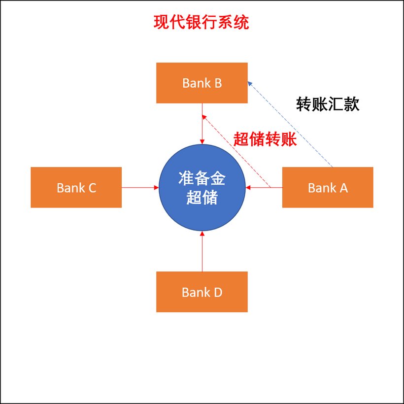 商业银行为什么要有基础货币准备金超储?如果你从银行A转账到银行B,如何确定这笔钱真正转过去了?在银行之间,需要有共同认可的一般等价物,进行转账清算。基础货币准备金超储就是所有商业银行都认可的一般等价物,因为是央行发行的基础货币,是央行的负债,具有法定效力。基础货币准备金