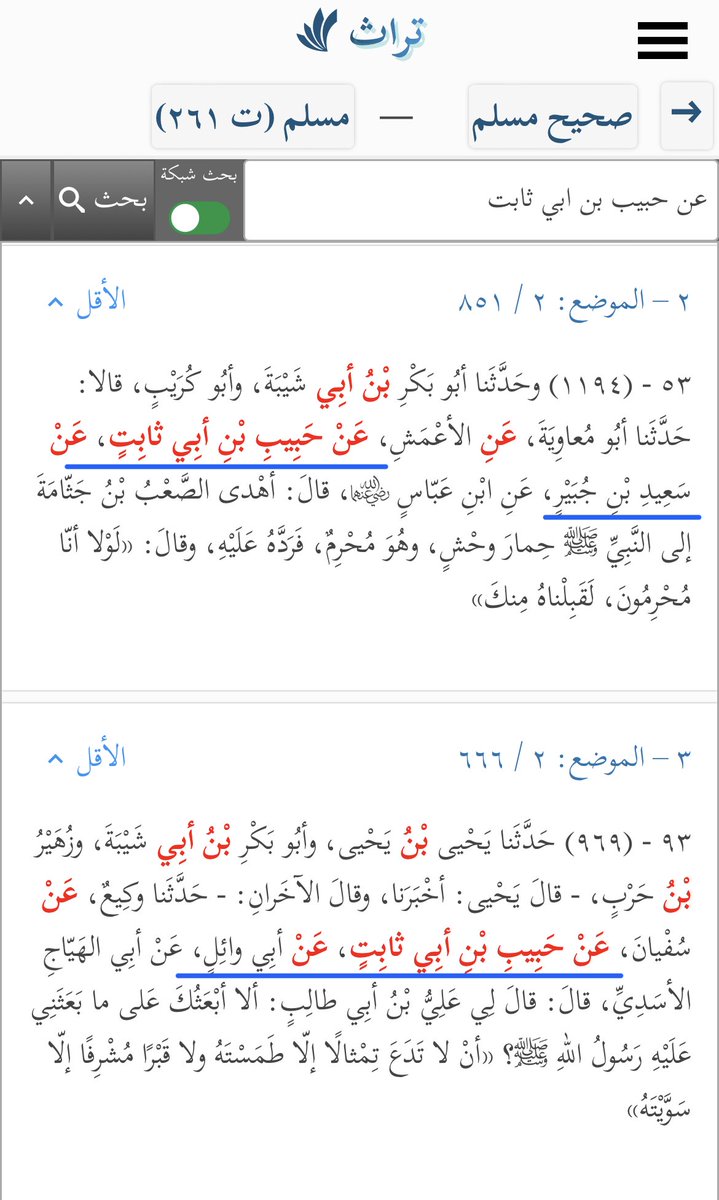 ١. الاعمش عن حبيب بن ابي ثابت عن ابي الطفيل عن زيد بن ارقم.