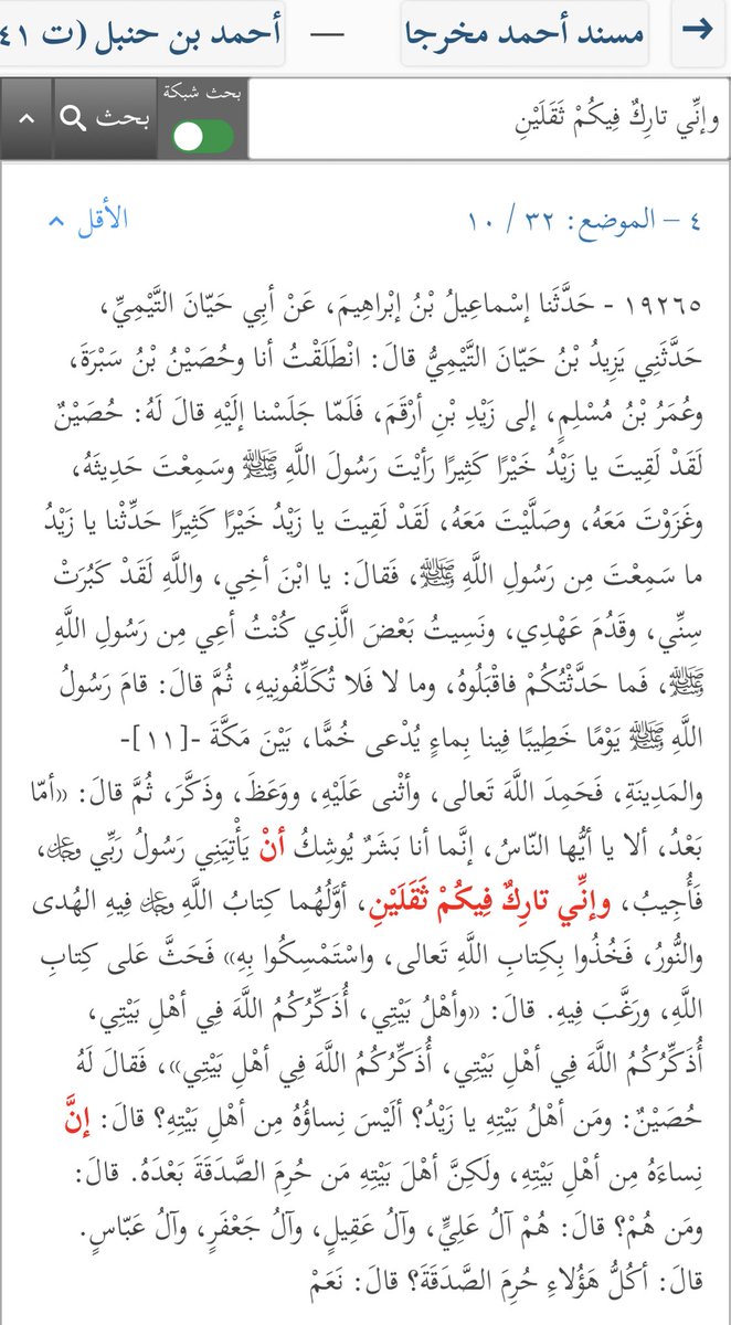 🔷 معنى حديث الثقلين في صحيح مسلم
