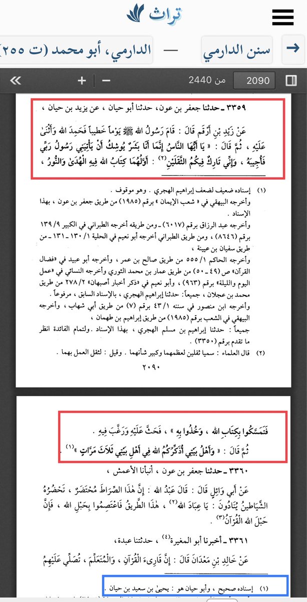 ٣. يزيد بن حيان عن زيد بن أرقم.