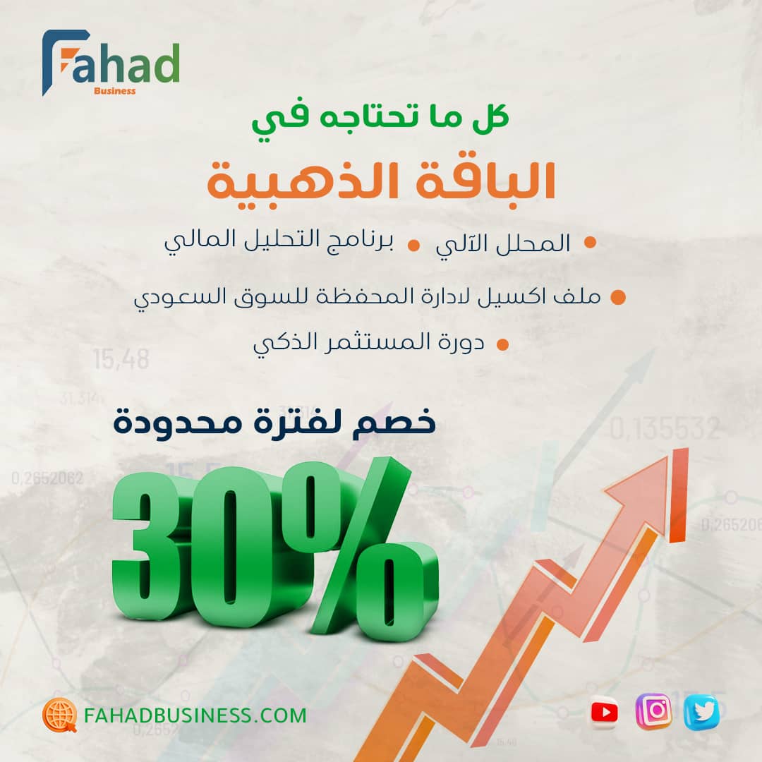 يوجد الان خصم 30% ينتهي بعد 3 ايام، ابدء اليوم بالاستثمار الامثل والاسهل مع بيانات ماليه دقيقه لكامل السوق ويسهل عليك الاختيار وبناء محفظة اسهم متنوعه قوية