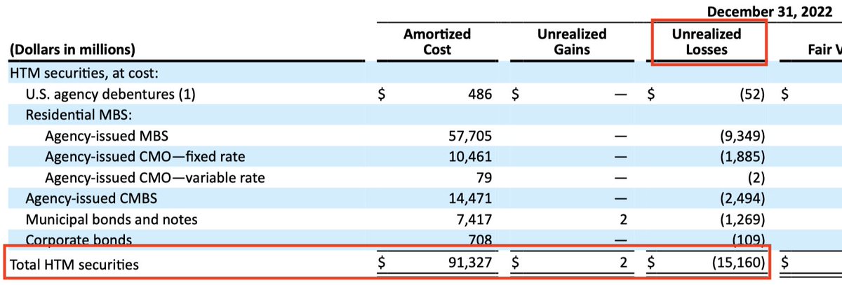 ▪️هناك مبلغ 91 مليار دولار والذي يمثل الاستثمارات في أذون الخرانة ذات العائد الثابت (HTM) يتم قياسةُ وفقًا للمعايير المُحاسبية بالتكلفة المُستهلكة (Amortized Cost) ووفقًا لهذه السياسة فالانخفاض في قيمة هذه الاستثمارات لا يظهر في القوائم المالية (Unrealized Loss).