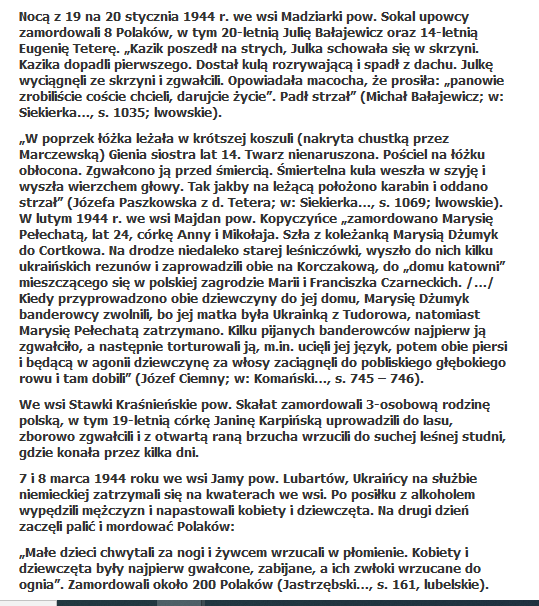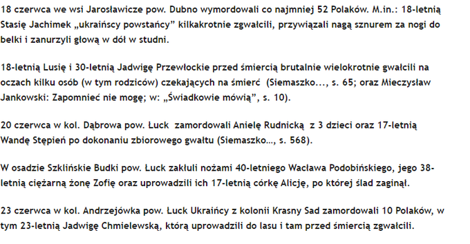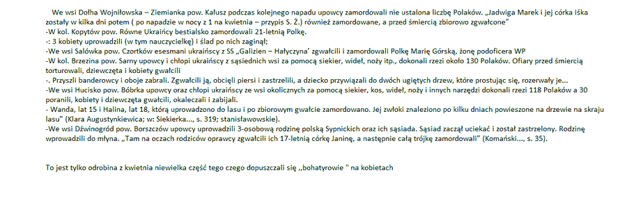 odnalezionych były zmasakrowane, zwykle miały obcięte piersi, wyłupane oczy i rozprute brzuchy od narządów rodnych aż po szyję. Przeważnie każdy gwałt kończył się śmiercią ofiary .Nie oszczędzano nawet 6 letnich dziewczynek .Skur....ny nie ludzie -sąsiedzi prawda? 7/7