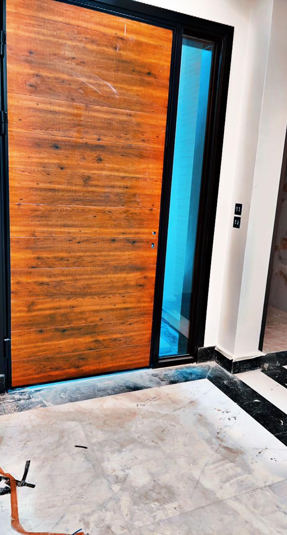 ▪️أبواب الألمنيوم كلادنج هي أبواب ذات هيكل من الحديد والتصفيح الخارجي يكون بألواح الألمنيوم كلادنج.