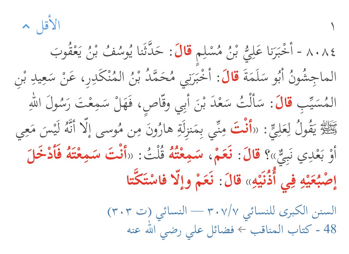 فأصبح المعنى عندهم: [انت مني بمنزلة هارون من موسى إلا أنه لا نبي بعدي ولست خير هذه الأمة بعدي ولست وزيرا من اهلي ولا اخا لي في الدنيا والآخرة ولا شد الله بك عضدي ولم يُشركَّ في امري ولن تخلفني في قومي وقلت لك هذا الحديث تطيبا لقلبك فقط ولا اعنيه حرفياً]