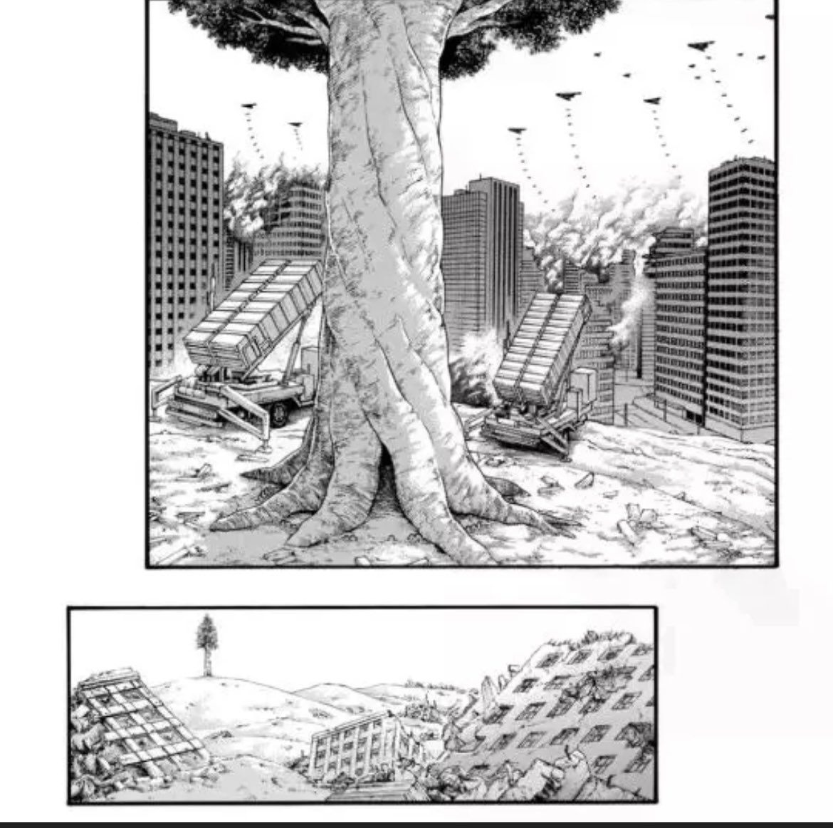 وما يجعلني اثق في هذا التحليل هو الشاشة السوداء التي قطعت المشهد فجاة، وجعلت منظور ايرين للشجرة يراها وهو مستلقي على الارض كما في اول حلقة تماماً بالقصة