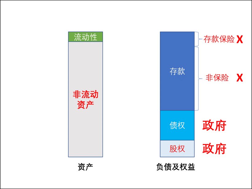 储户的存款都不安全。这是中国商业银行的股权结构决定的。而且,与硅谷银行不同,中国的商业银行,大部分资产是充满坏账的贷款,包括大量的地方政府债,地方政府平台贷款,大量住房按揭贷款,而不是安全的国债或高等级债券。中国商业银行的资产,持有到期,只会坏账暴露,而不是恢复面值。