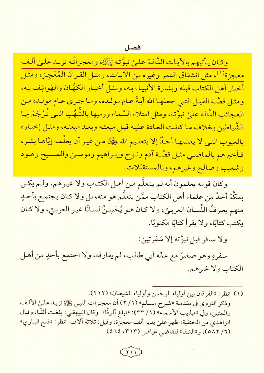 (وقد اتفق العلماء مع بقيَّة الأئمة على أن انشقاق القمر كان في عهد رسول الله صلى الله عليه وسلم، وقد وردت الأحاديث بذلك من طرقٍ تفيد القطع عند الأُمَّة).