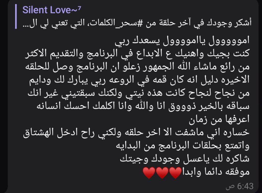 أوّل بَرنَامج قَدمْته كَان الأَقرب لقَلِبي ورُوحي ولِجُمهوري، برنامج #سحر_الكلمات على مدار شهرين