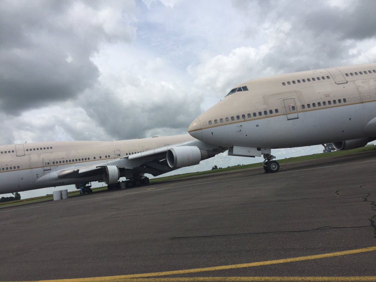 الزملاء ونخب الطياريين اللي شاركوا في ترحيل ال B747-400 إلى مطار كيمبل في بريطانيا.