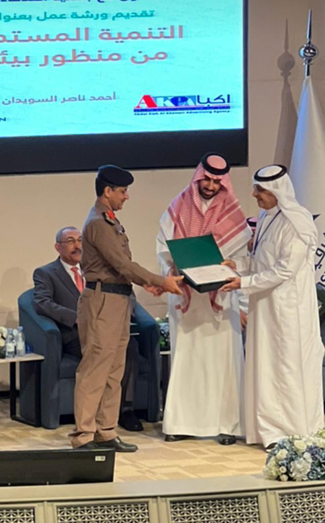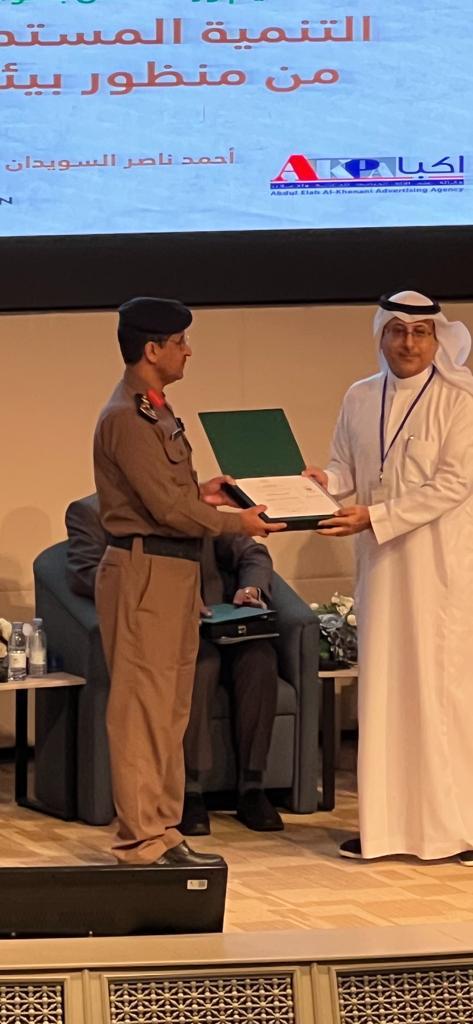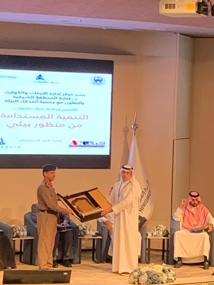 كرم ريئيس مجلس إدارة جمعية أصدقاء البيئة د. طلال الرشيد .. العميد د.محمد بن سعود بن حاضر مدير مركز ادارة الازمات والكوارث بإمارة المنطقة الشرقية على جهودهم في إنجاح ورشة التنمية المستدامة من منظور بيئي