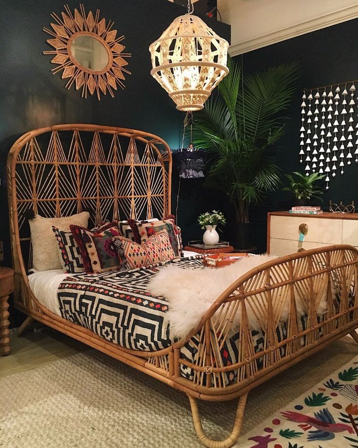 طراز بوهيمي في تصميم غرف النوم. فكرة ملهمة في الشاليهات الخاصة وشاليهات الإيجار اليومي