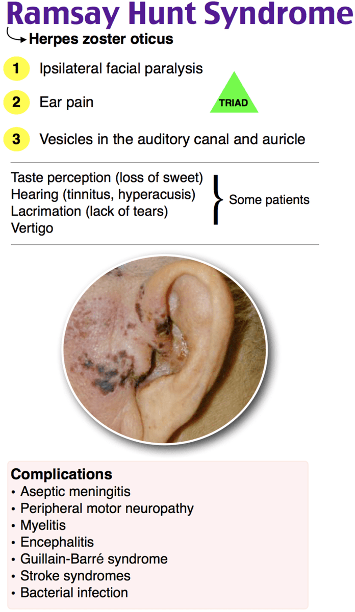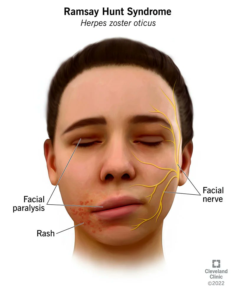 1. قد يصيب عصب القوقعة والعصب الوجهي وهذا ما يسمى #متلازمة_رامساي_هانت ، مثال #جاستن_بيبر.