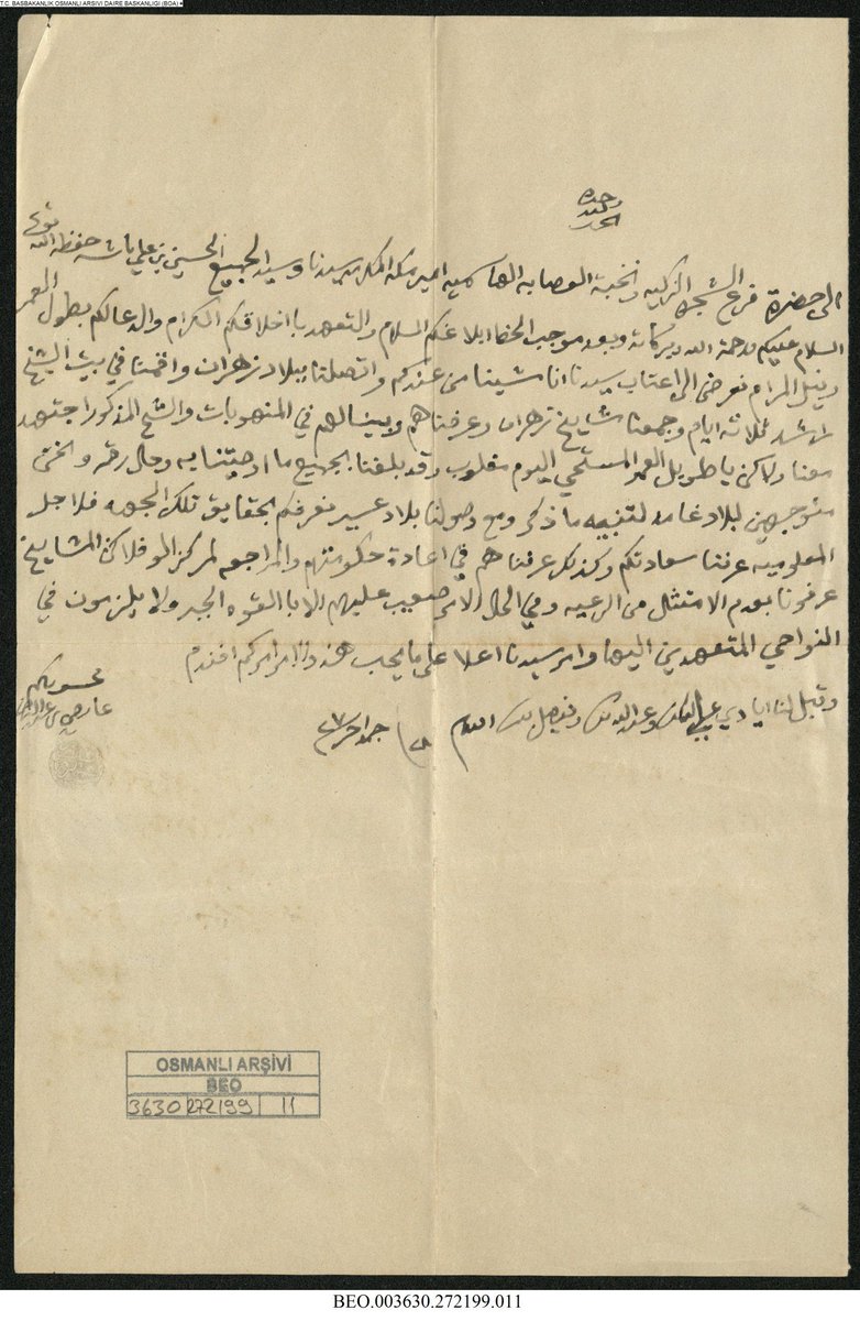 رسالة من عايض بن عبدالرحمن إلي أمير مكة الحسين بن علي بشأن مشايخ زهران و غامد ويظهر لك الخطاب مع #الأشراف