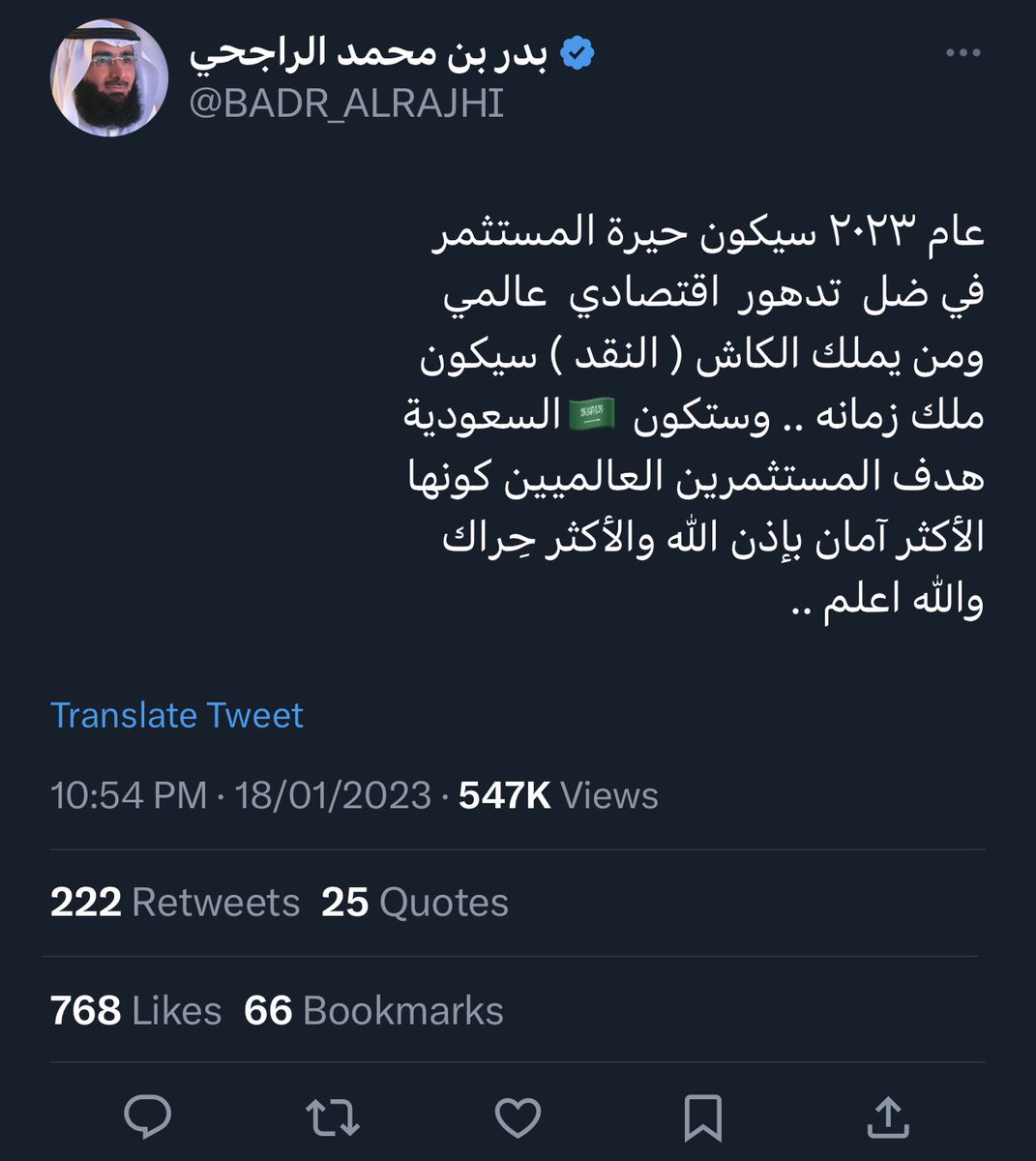 ان تبلغ ثروة بدر بن محمد الراجحي 22.5 مليار