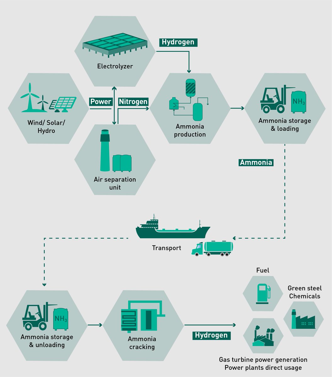 يمكن تحويل ما يصل الى نسبة 99%من الأمونيا الى هيدروجين عند درجة حرارة 425 و لكن هذا التفاعل يحتاج لوجود المحفزات