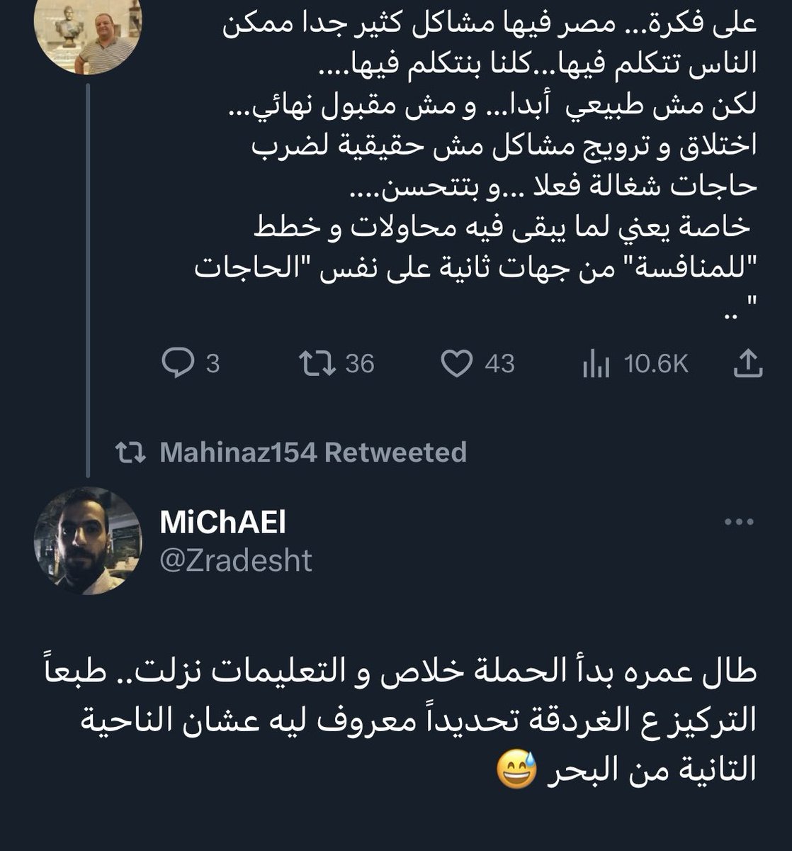 كان ممكن التويت تفضل في إطار مناقشة وتخلص وتتنسي زي غيرها، لولا الهطل اللي عملوه والسكرين شوتس اللي خدوها، والكلام عنها لأيام، فتيجي ناس تعمل فولو علشان تقرأ، فمسحتها.