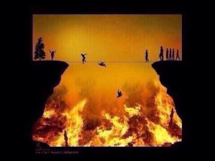 لكن مزيد من الصحوة ، والصورة ستكشف له اسرار عميقة جدا ، ما يعنينا منها هنا هو الخاص بموضوع المنشور : لما تقع الناس من على الحبل ،، ومن من الناس يبقى ليصل للطرف الاخر حيث الجنة ؟؟