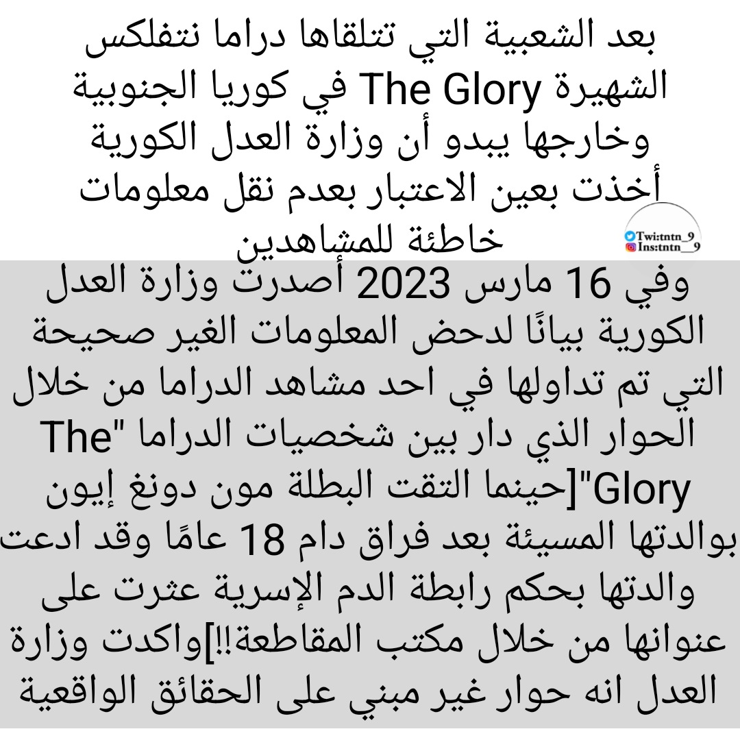 ثريد: وزارة العدل الكورية تصدر بيانًا لدحض المعلومات الغير صحيحة التي تم تداولها في احد مشاهد دراما The Glory!!