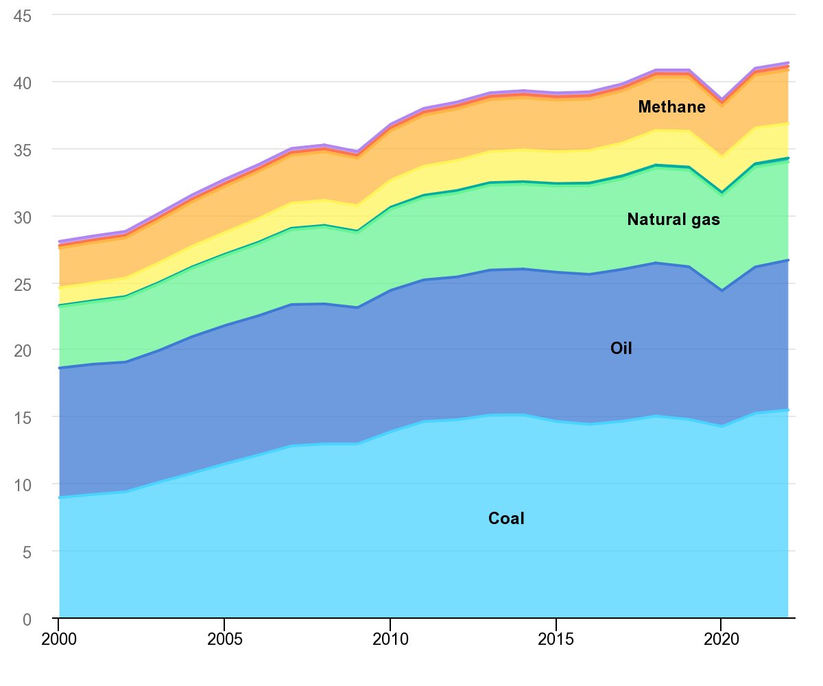 त्यांचं म्हणणं पटतं कारण पॅरिस करारानुसार जगातलं कार्बन उत्सर्जन २०२५च्या आधी सर्वोच्च बिंदू गाठून मग घटायला हवं. तसं होण्याची सुतराम शक्यता दिसत नाहीये. जगातल्या सगळ्या मोठ्या देशांमधलं उत्सर्जन वाढतंच चाललंय. (तक्ता - iea.org) (५/१०)