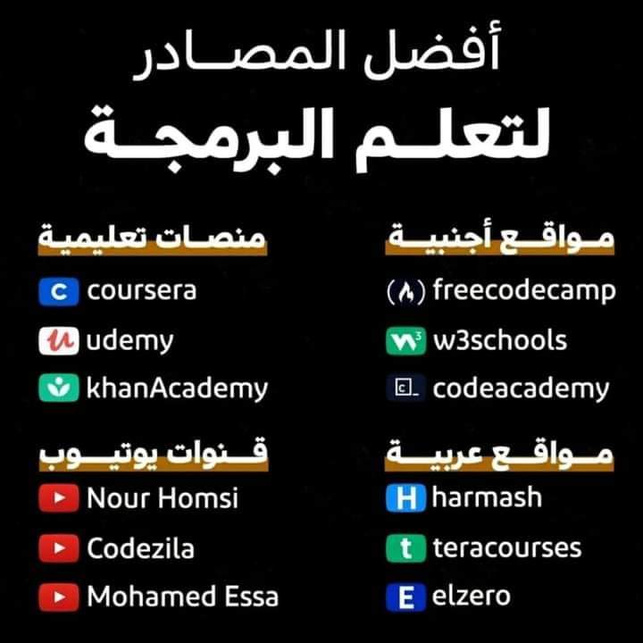 ستجد ايضا هون أفضل قنوات يوتيوب لاحتراف البرمجة :-