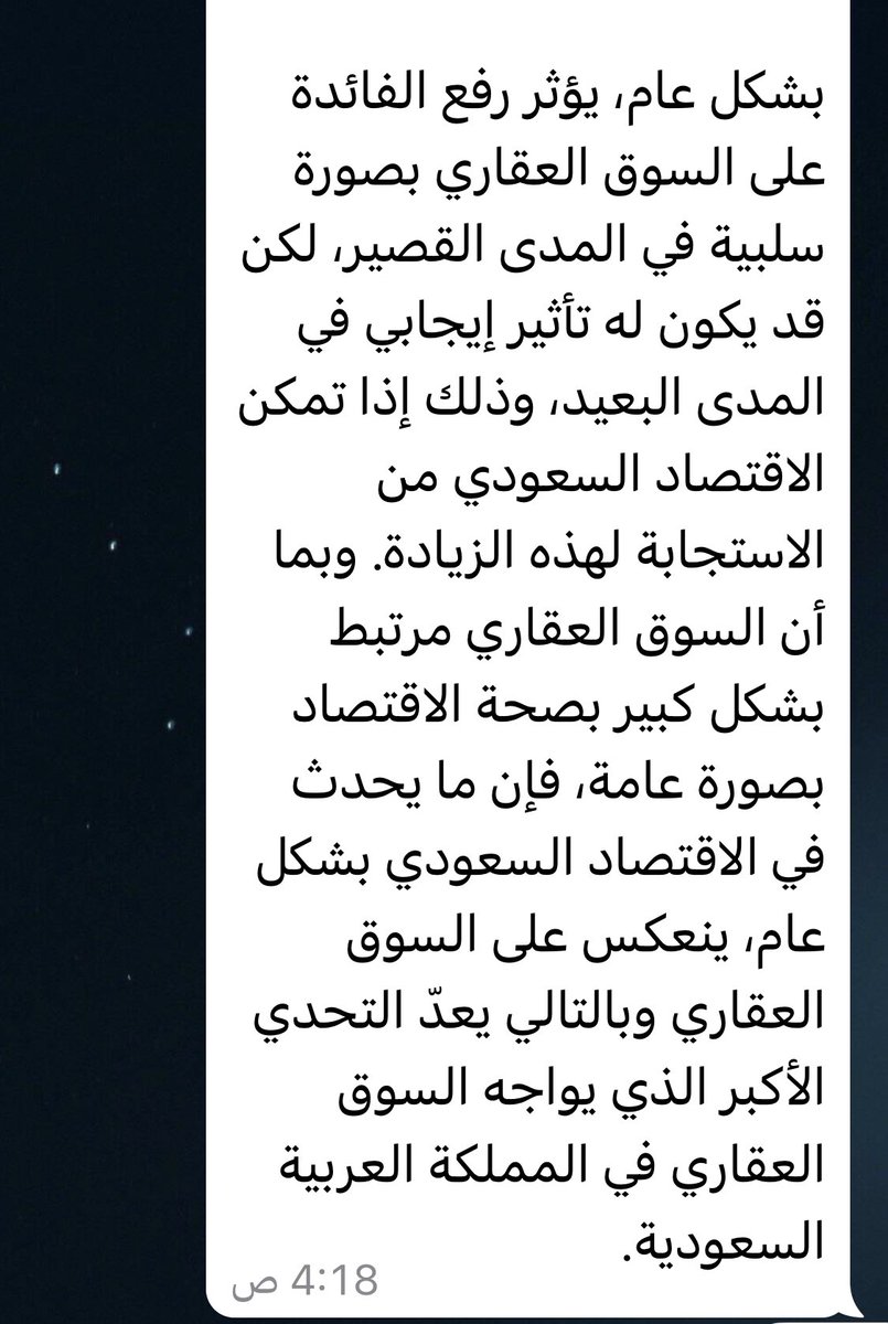 ماهو تاثير رفع الفائدة على السوق العقاري السعودي؟ فاجاب 👇👇