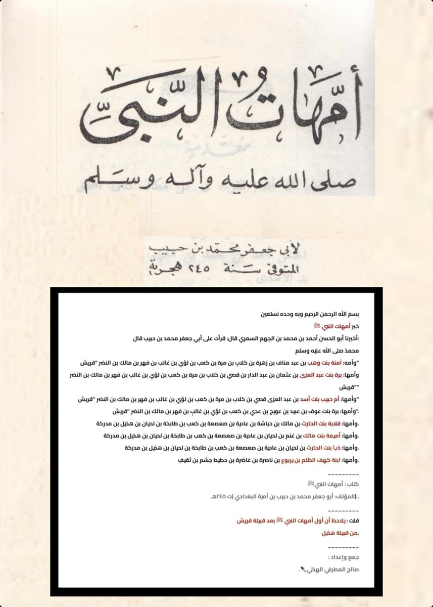 ⬇️ قلت : يلاحظ أن أول أمهات النبي ﷺ بعد قبيلة قريش من قبيلة هذيل.