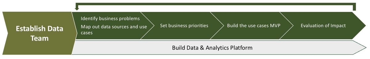 ٤- أن تعمل بالتوازي على جمع وتنقيح ومعالجة وتخزين "وحوكمة" كافة البيانات التي تحتاجها لحالات الاستخدام التي تعمل عليها حاليا بما شاملا ذلك بناء الأجزاء المختلفة من منصة البيانات Data & Analytics Platform وبناء "منتجات البيانات Data Products".