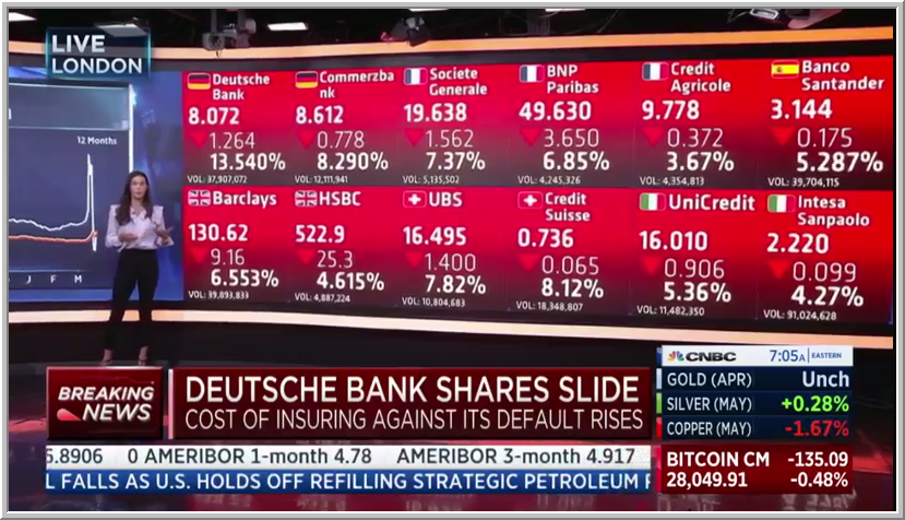 دوتشيه بانك احد اعرق المصارف الأوروبية واقدمها، المقر الرئيس للبنك في فرانكفورت المانيا، ويعمل فيه 85,000 موظف، والبنك تأسس في عام 1870م، اى قبل حوالي 153عاماً.. هل سيكون هذا الصرح العريق الضحية القادمة بعد بنك كرديت سويس الأوروبي، انه سقوط العظماء ياسادة