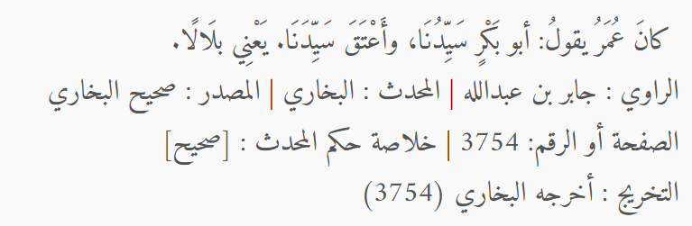 ثم يقول: «لا يزال على ذلك حتى يموت أو يكفر بمحمد»، فيأبى بلال ويقول: «ربي الله، أحدٌ أحد، ولو أعلم كلمة أحفظ لكم منها لقُلتُها»، فمر أبو بكر الصديق بهم، فاشتراه منهم لما أيسوا أن يردّوه عن دين الإسلام، فاشتراه منهم بأربعين أوقية من فضة