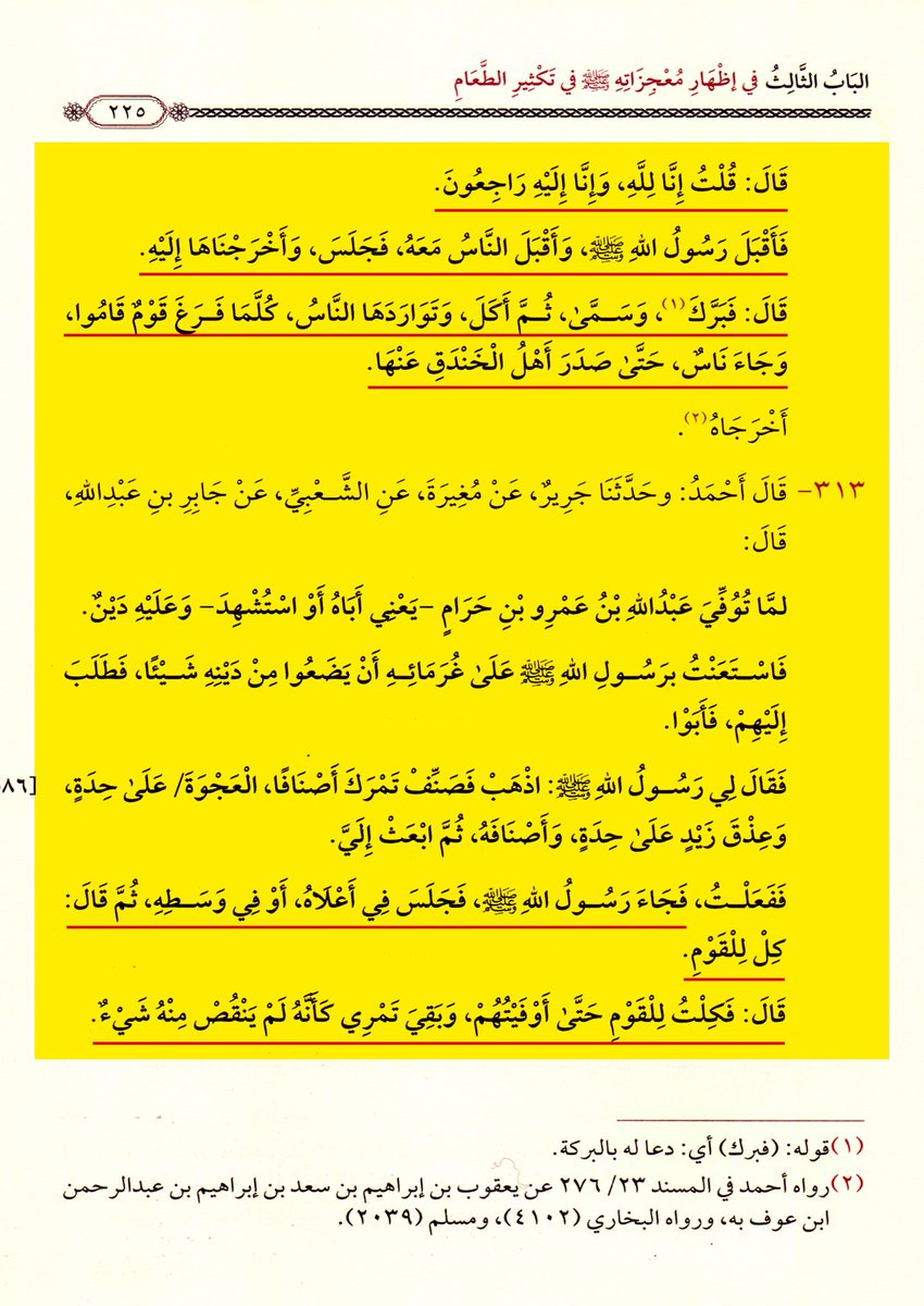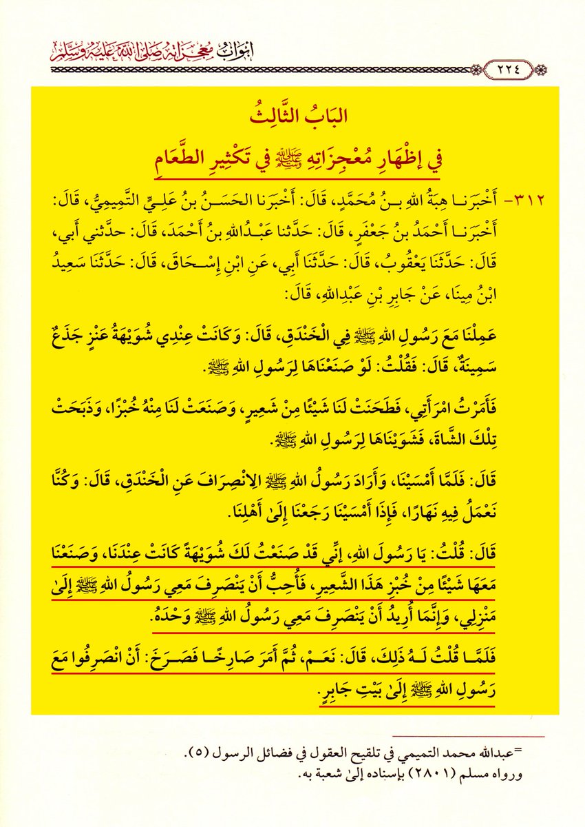 قال ابن الجوزي: (الباب الثالث: في إظهار معجزاته صلى الله عليه وسلم في تكثير الطعام).
