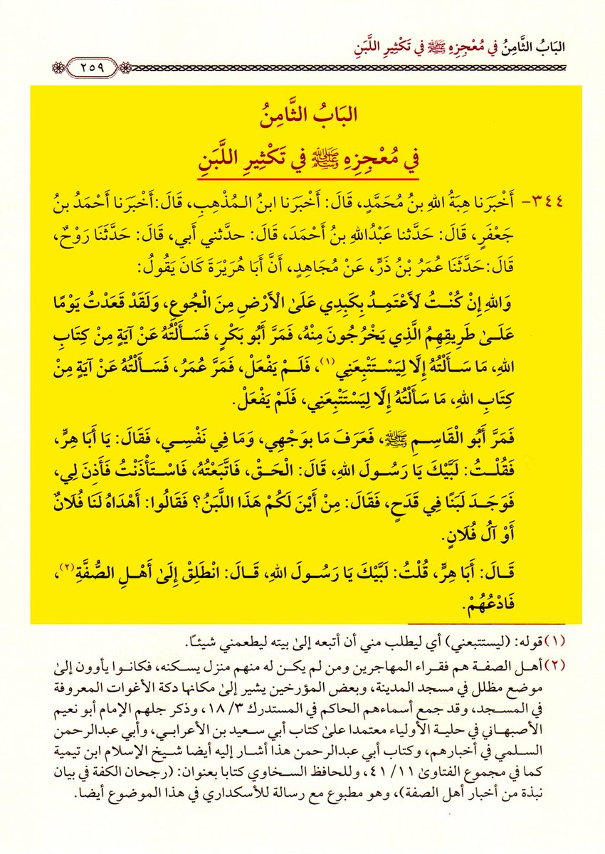 قال ابن الجوزي: (الباب الثامن: في معجزه صلى الله عليه وسلم في تكثير اللبن).