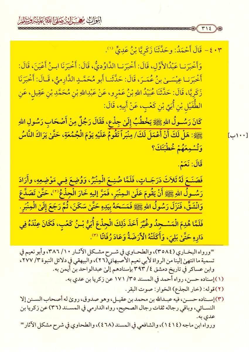 قال ابن الجوزي: (الباب السابع عشر: في ذكر حنين الجذع إليه صلى الله عليه وسلم).