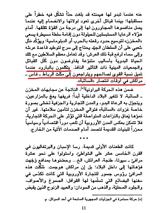 ومنه نستنتج ضعف قبضة الدولة المركزية في مراكش قبل الوجود الفرنسي، ولولا ليوطي ما كانت هناك دولة مركزية ولما تم القضاء عن مناطق السيبة التي كانت خارجة عن سلطة المخزن وهو ما يؤكده جيل بيرو في كتابه " صديقنا الملك" ص 11..
