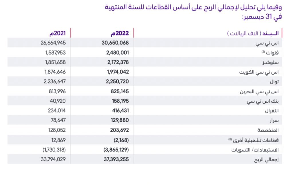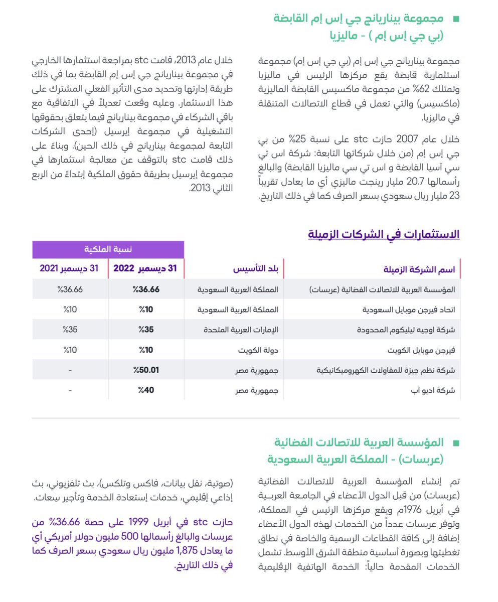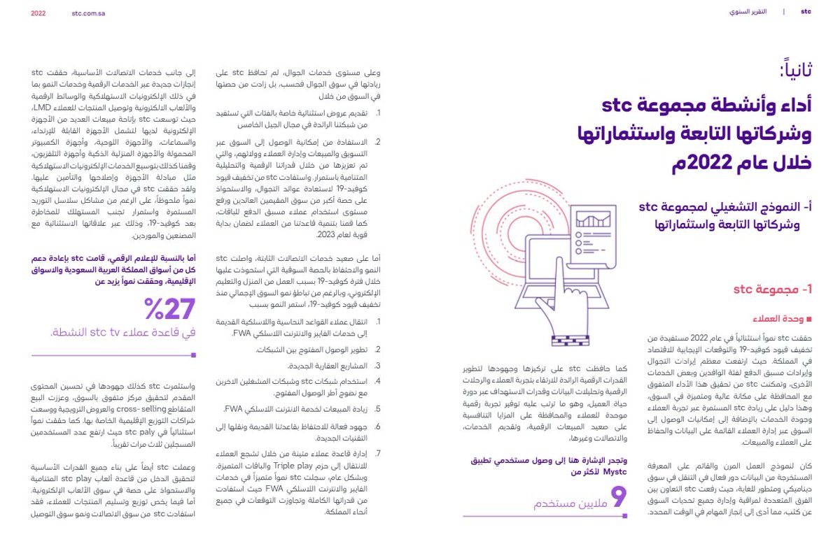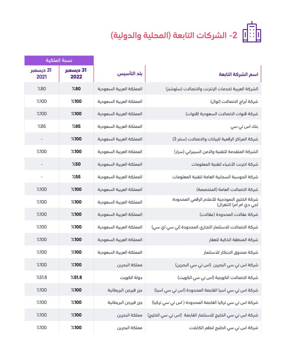 الأداء المالي لـSTC وشركاته التابعة 2022 💜