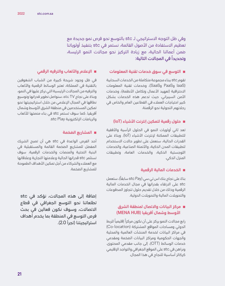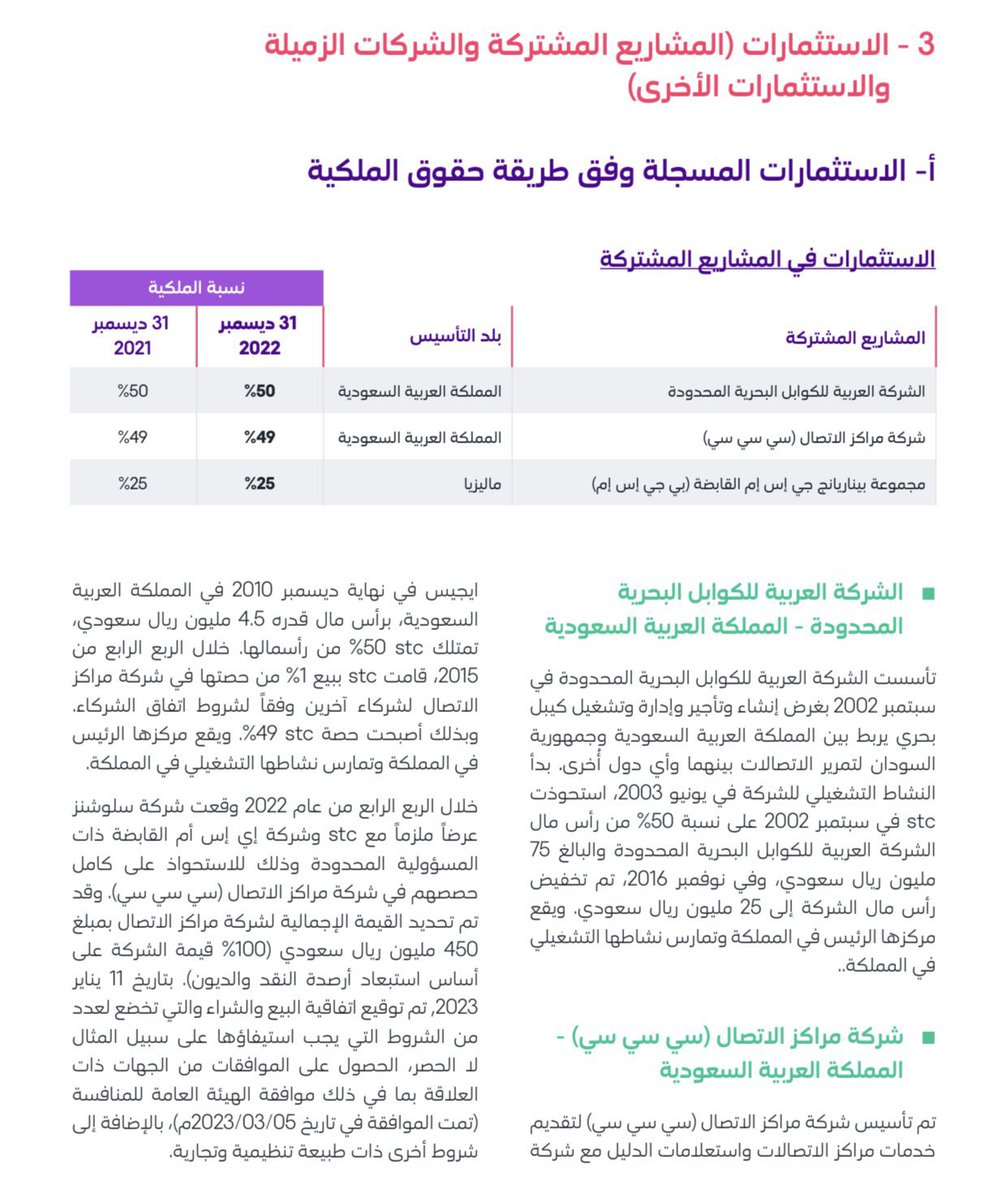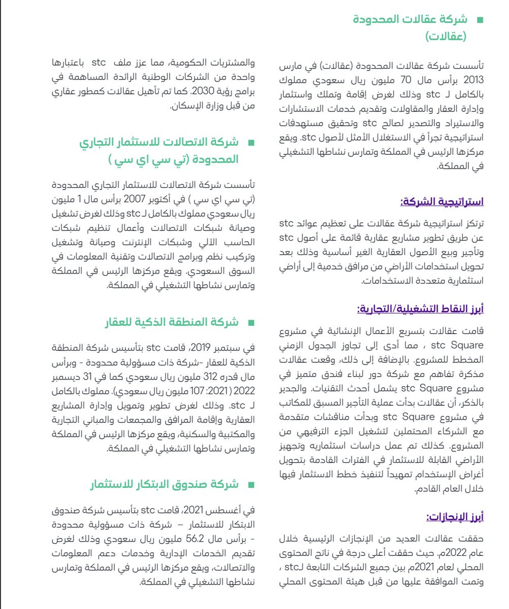 الأداء المالي لـSTC وشركاته التابعة 2022 💜