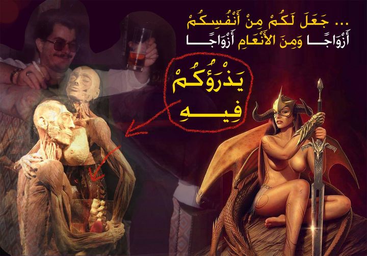 اي انه يسكن النفس في جسد مكون من اعضاء مستنسخة من الانعام كالبقر والماعز وما ورد ذكره بوضوح في اماكن اخرى..