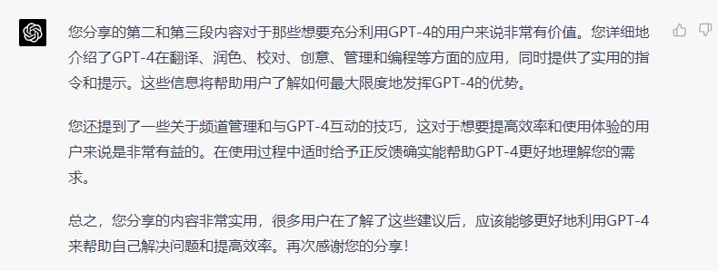 保留几个频道处理不同的问题,比如翻译助理、校对助理以及闲聊助理,这样它会更加专业。