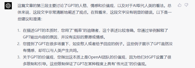 缺点是太长的文章,生成比较慢,而慢会导致网络错误,因此建议分段处理。另外,可能是中文能力问题,GPT-3.5的校对能力一般,而GPT-4的中文强悍,所以效果好了很多。