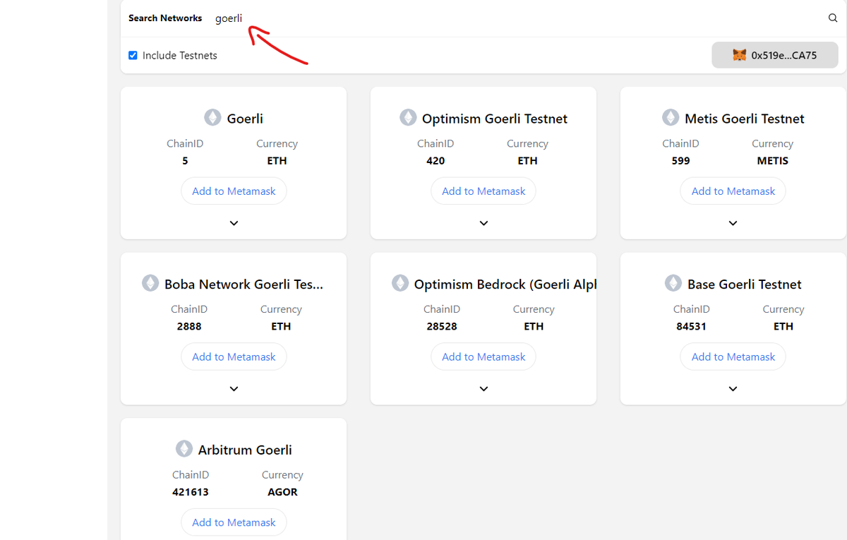 - ادخل هنا chainlist.org و قم بأضافة شبكة الكورلي