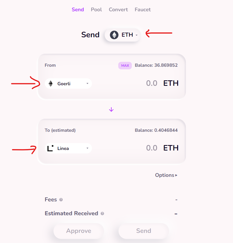 - ارجع هنا goerli.linea.build واضغط Swap