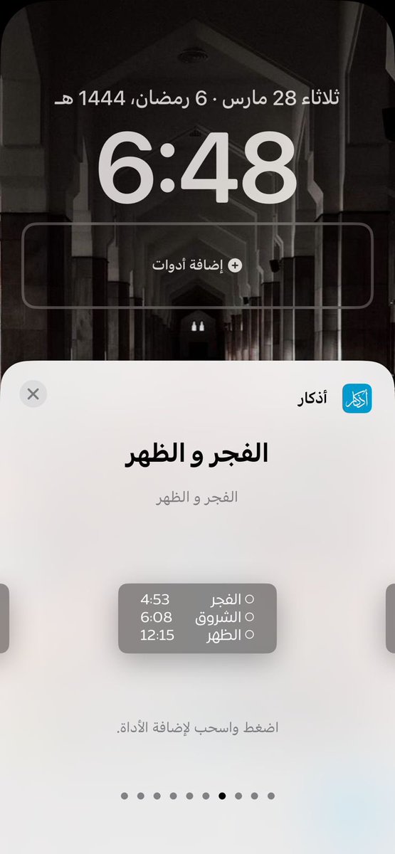 • إضافة أدوات بعدهم بيجينا خيارات كثيرة نضغط على التطبيق الي حملناه أذكارك