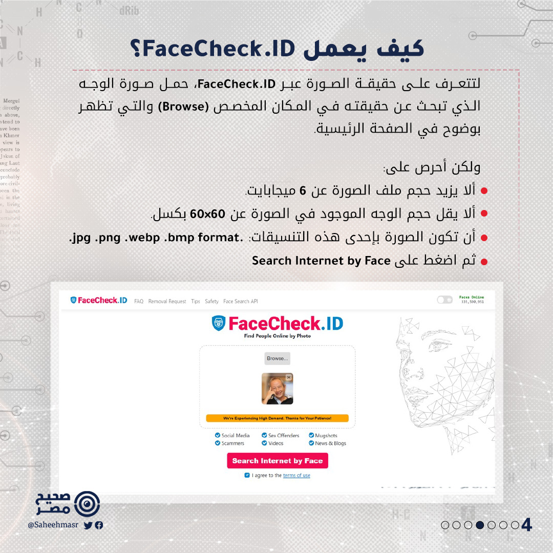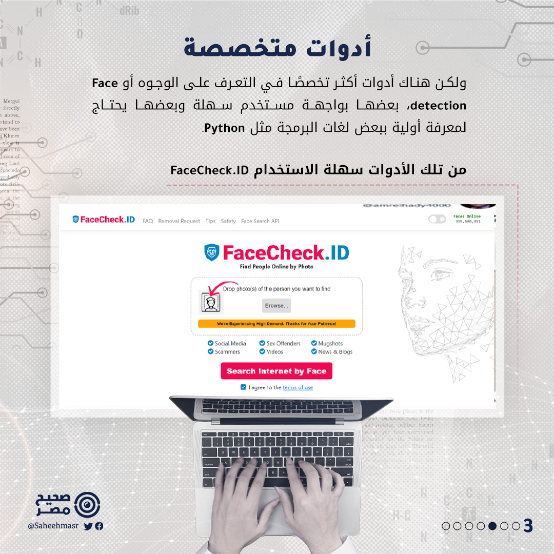🔴 في إطار سلسلة #كيف_نتحقق؟ يستعرض صحيح مصر اليوم، واحدة من أدوات التحقق من الوجوه أو Face detection، والتي يمكن أن تتعرف من خلالها على حقيقة الصور المُضللة، التي تنتشر على فيسبوك وتويتر.