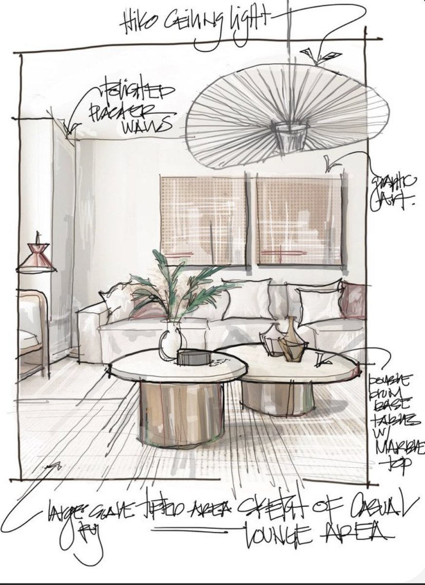 ويترك لنا المصمم بصمة اسيوية دخيلة في استخدامه الانارة المعلقة