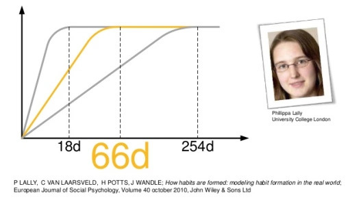 لبناء عادة جديدة قد تحتاج من 18 يوم إلى 254 يوم، وبالمتوسط ٦٦ يوم